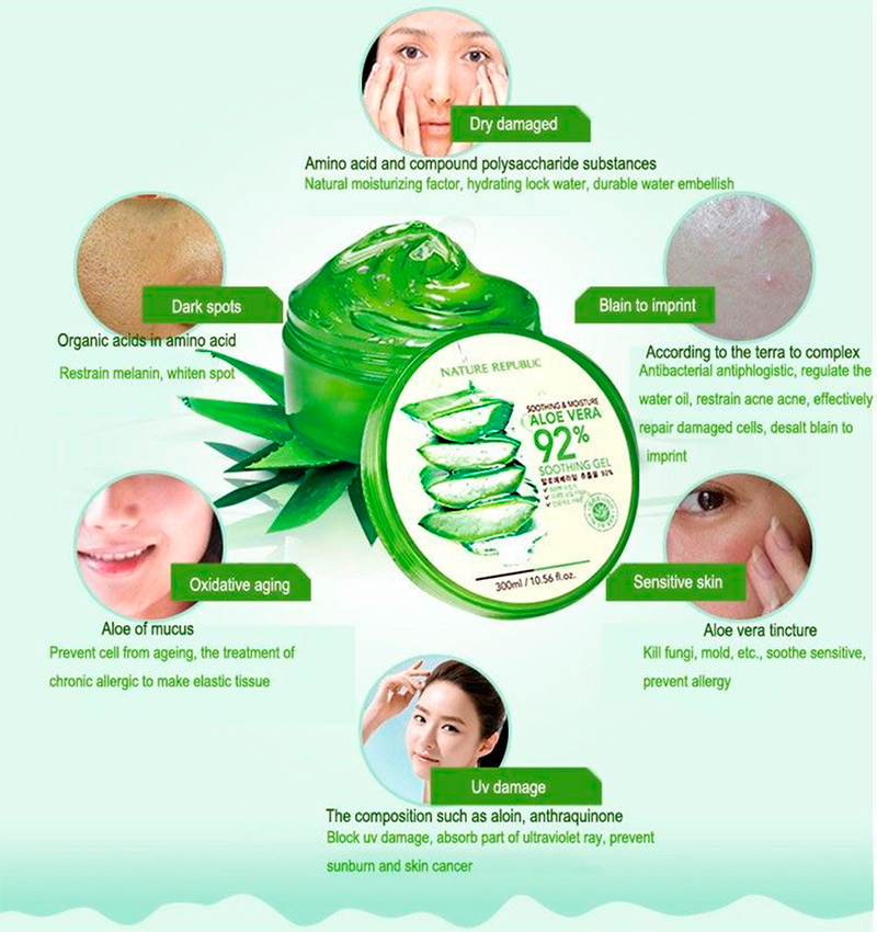 اس کی جیل میں تما م طرح کے جراثیم مثلاً بیکٹیریا،وائرس اور پھپھوندی کی افزائش کو روکنے کی صلاحیت پائی جاتی ہے۔ مختلف الرجیز‘ زخموں یا جلی ہوئی جلد پر لگانے سے فوراً آرام آتا ہے۔ اس کے متواتر استعمال سے پرانے زخم بھی جلد ٹھیک ہوجاتے ہیں۔